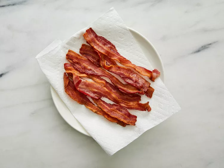 - Lay bacon strips in a single layer in the basket (do not overlap).