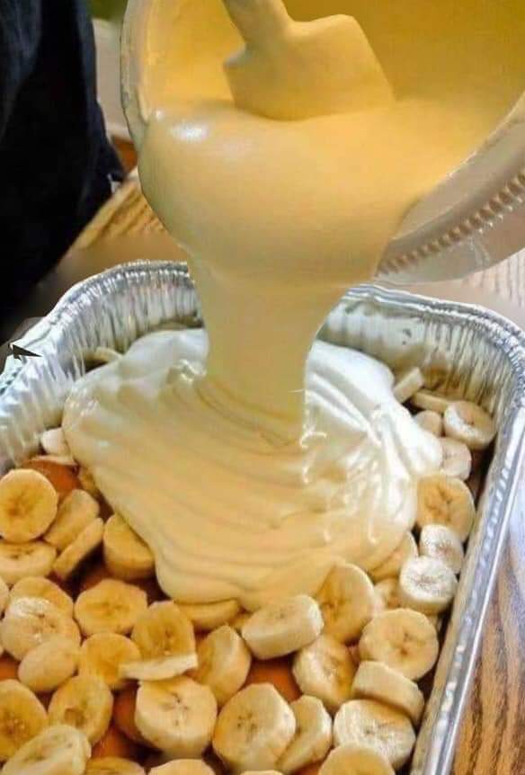 - Pour the mixture over the cookies and bananas and cover with the remaining cookies.